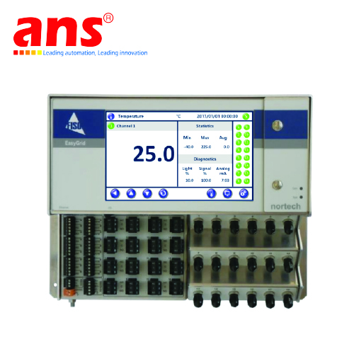 EasyGrid (E-GRID) là hệ thống giám sát nhiệt độ đa kênh dựa trên công nghệ cảm biến sợi quang, cho phép theo dõi đồng thời tới 18 kênh nhiệt độ trên giao diện hiển thị và cho phép xuất tín hiệu analog hoặc truyền dữ liệu tới hệ thống SCADA / PLC. Thiết kế này lý tưởng cho các ứng dụng như giám sát nhiệt độ nóng điểm (hot-spot) trong máy biến áp, lò điện, trạm năng lượng, hoặc thiết bị nhiệt công nghiệp.